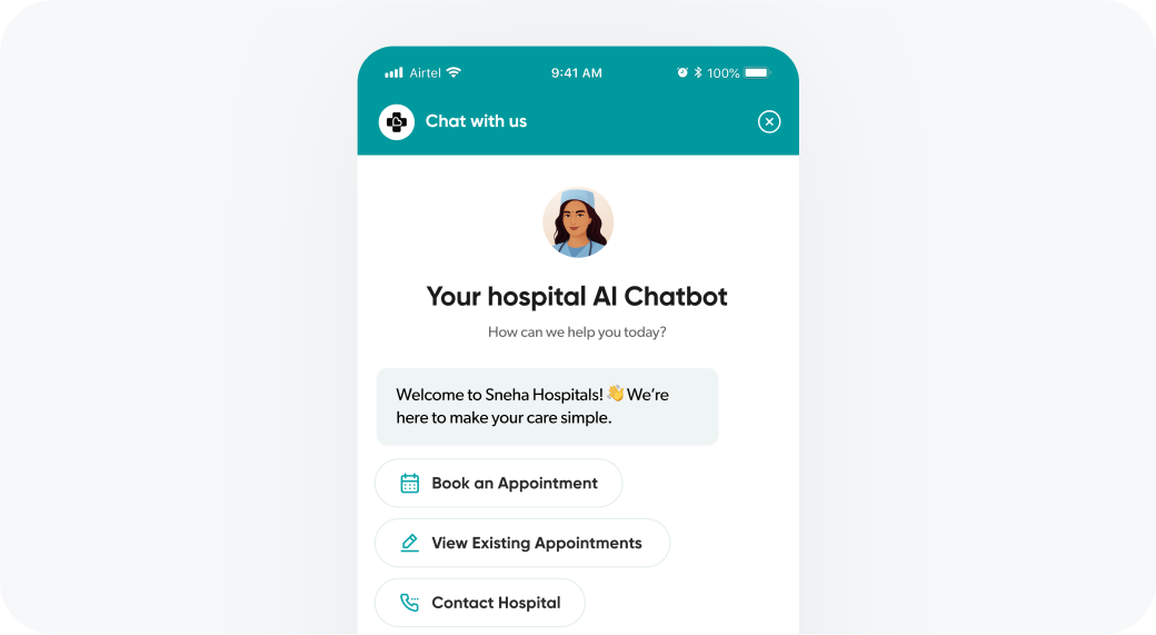 Patients can book, pay, and order medicines or tests using your hospital’s app and chatbot.