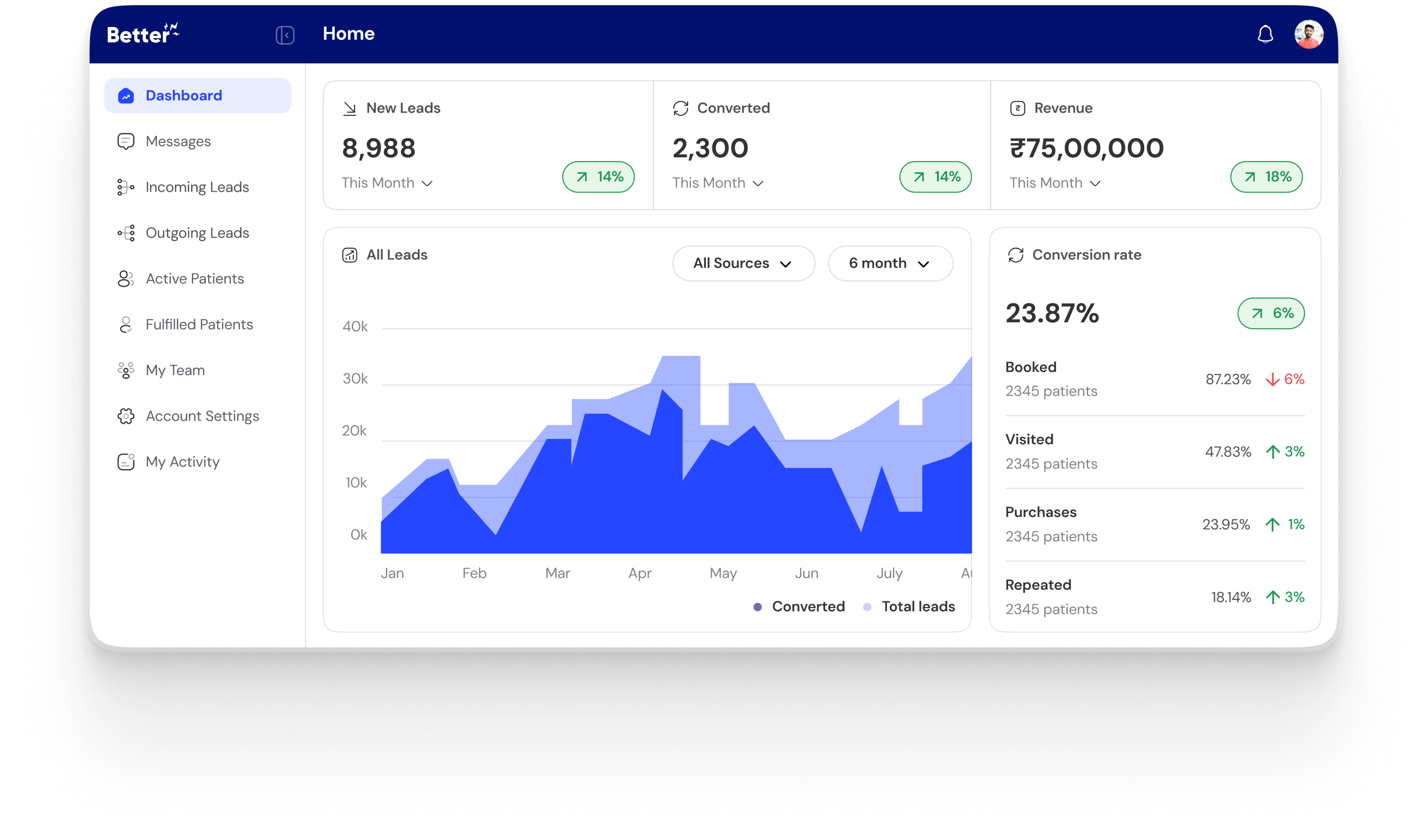 The first Unified Growth CRM for hospitals. It shows everything in one place: calls, leads, bookings, revenue, campaigns, even app usage. You don’t have to jump between tools anymore.